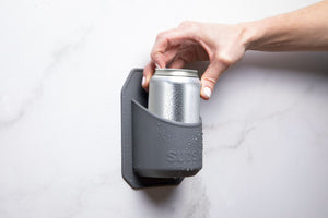 Designed for glossy surfaces like glass, mirrors, marble, metal, shiny tile or laminate, the shower drink holder for beer can be easily reapplied and won’t leave any residue behind. Featuring patented grip technology, this beverage holder doesn't use suction cups, adhesives, or wall mounts.